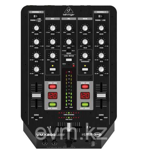VMX200USB – 2 канальный микшер с супер гладкими ULTRAGLIDE фейдерами с жизненным циклом до 500,000 и оптическим кроссфейдером для надежности и гладкой аудио работы. Регулируемая кривая кроссфейдера позволяет быстро адаптироваться к любому стилю микса. Эффект объемного звучания XPQ придаст Вашему миксу финальный штрих. Микшер имеет 3-полосный эквалайзер, регулятор Gain и точного уровня счетчик на канал